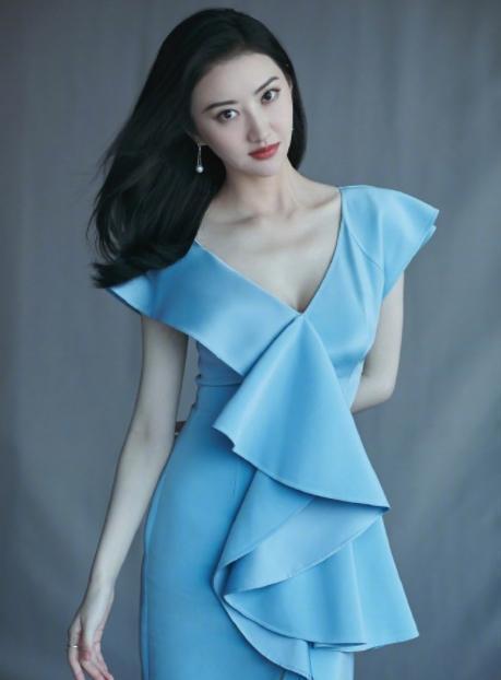 V领连衣裙相比圆领或者是高领来说都很显瘦,如果你上半身比较胖或者是脸比较圆润,可以尝试一下这种v领的裙装,景甜下面的蓝色连衣裙也融入v领的设计,宽松的袖摆修饰了手臂,蓝色看起来也很清爽,穿起来会觉得特别清新。
